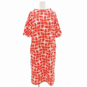 ドゥクラッセ DoCLASSE 美品 ワンピース ひざ丈 半袖 ドルマンスリーブ M オレンジ 白 ホワイト /GV レディース