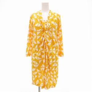 ドゥクラッセ DoCLASSE 美品 ワンピース ひざ丈 長袖 総柄 S 黄 イエロー 白 ホワイト /JS レディース