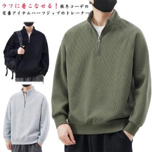 ハーフジップ トレーナー メンズ スウェット 長袖 ハイネック ジッパー ZIP チャック 無地 シンプル ビックシルエット カジュアル キレイめ 大