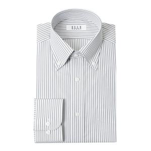 ELLE HOMME ワイシャツ メンズ 長袖 形態安定加工 ゆったり グレー ストライプ ボタンダウン【爆買】