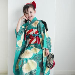 レンタル 七五三 7歳 LOWRYS FARM ローリーズファーム 着物 セット 女の子 四つ身 絵羽 大菊に松・ターコイズ 子供 七歳 七才 ※2025年10月・12月予約空きなし
