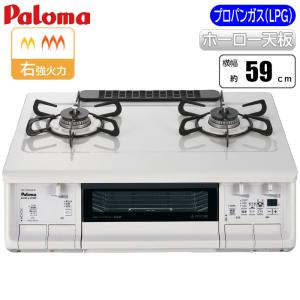 パロマ ガスコンロ プロパンガス用 2口 水無両面焼グリル 幅59cm 左強火力 PA-380WHA-L LPGナチュラルホワイト Paloma
