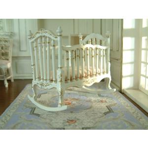 ARTLEER Elegant Royal Gold White Luxury Hand Crafted Victorian Baby Cradle 1/12 Scale Miniature