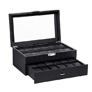 BASTUO Watch Box for Men, 24 Slots Luxury Watch Case Display Organizer, Jewelry Box with Carbon Fiber Design, Men's Storage Holder Boxes with Glass To
