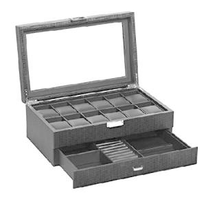 BASTUO Watch Box for Men, 12 Slots Luxury Watch Case Display Organizer, Jewelry Box with Carbon Fiber Design & Leather Pillows, Black