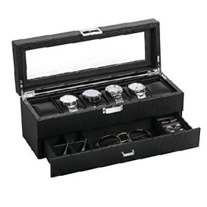 BASTUO Watch Box for Men, 6 Slots Luxury Watch Case Display Organizer, Jewelry Box with Carbon Fiber Design & Leather Pillows, Black