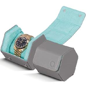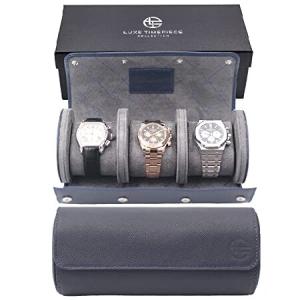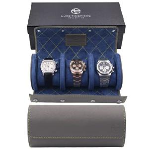 Watch Roll Travel Case For 3 Watches - Genuine Saffiano Leather Watch Roll Case With Luxury Ultrasuede Cross Stitch Lining in Slate Grey - Protect, St