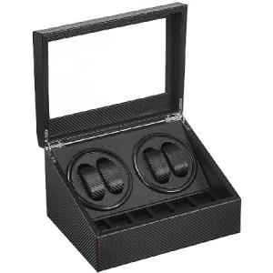 Automatic Watch Winder with 4 Quiet Japanese Motor+ 6 Display Storage Spaces,Luxury Leather Watch Box for Man/Woman's Watches- AC Adapter (Carbon Fibe