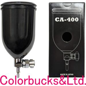 【ブラック/黒】【フリーアングル軽量アルミ足付塗料カップ 400ml】軽量アルミカラーカップ【取付部G1/4】各社G1/4スプレーガンに取付可能