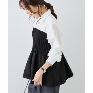 ブラウス シャツ シャツドッキングペプラムニット レディース