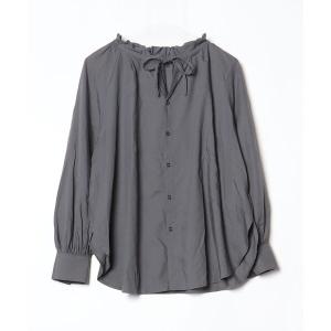 ブラウス シャツ メタルパーツフロントフリルタイブラウス/通勤対応 レディース