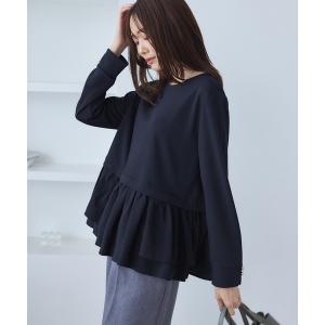 tシャツ 布帛ドッキングペプラムギャザープルオーバー レディース