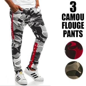 トラックパンツ ストリート ライン 迷彩ストレッチ メンズ スリム サイドライン スウェットパンツ
