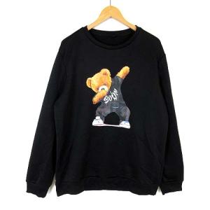 シーイン SHEIN トレーナー ポンチ プルオーバー テディベア プリント 長袖 XL 黒 ブラック マルチカラー 大きいサイズ メンズ