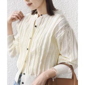 カーディガン SHIPS any:「手洗い可能」リネンミックス ハシゴレース シャツ カーディガン レディース