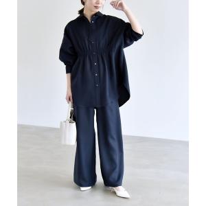 セットアップ quaranciel:「洗濯機可能」ギャザー シャツ & イージー パンツ セットアップ レディース