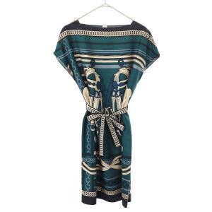 HERMES エルメス 23AW Brides de Gala et Chaines ツイルレーヌシルクドレスワンピース 3H0608DH グリーン系 36 IT433N3PUEJZ