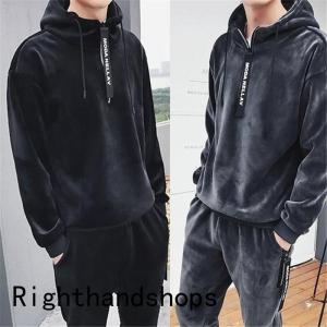 メンズ ジャージ上下セット ベロア 裏起毛 厚手トレーナー パーカー スエットセット 長袖 帽子付き スウェット スウェット春秋冬新作