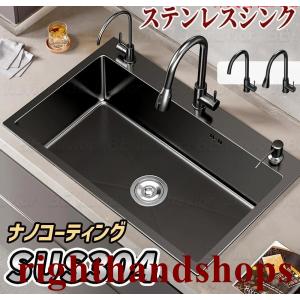 シンク ステンレス 二槽シンク 流し台 大判 DIY キッチン ステンレス製 SUS304 ナノコーティング 黒色 手入れ便利 油対策 耐摩耗 厚手 台所 ゴミ受け 混合水栓