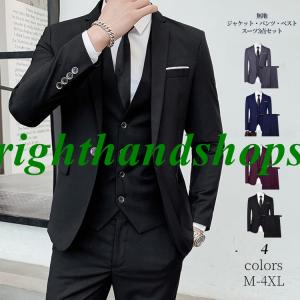 スーツ 3点セット メンズ おしゃれ ビジネススーツ カジュアルスーツ 3ピーススーツ フォーマルスーツ スーツセットアップ 洗える スリム リクルート 通勤