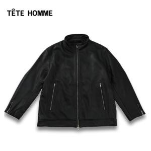 大きいサイズ メンズ TETE HOMME スタンドカラー レザーブルゾン 3L 4L 5L 6L