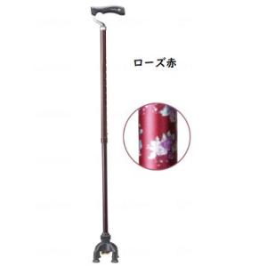 四点前後可動固定式 2ウェイステッキ TW-0128 ローズ赤 ユーバ産業 四点杖 多点杖 握る力が弱くても、安定するステッキ