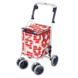 アルミワイヤーカート A-0245H 花柄赤 ユーバ産業 ショッピングカート 歩行 散歩 誕生日 敬老の日 プレゼント ギフト