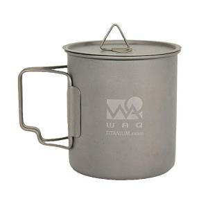 WAQ チタンマグカップ 450ml (蓋付き) キャンプ用 直火 シングル チタンマグ WAQ-TM1 (1)