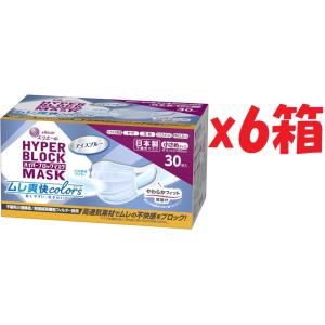 6箱セット エリエール (日本製 不織布) Zutto(ハイパーブロックマスク) ムレ爽快カラー アイスブルー 小さめサイズ 30枚 PM2.5対応 SHUTTER
