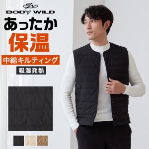 グンゼ キルティングベスト メンズ 秋冬 中綿 吸湿発熱 保温 キルト ジレ 中綿ベスト 暖かい あったか アウトドア BODY WILD ボディワイルド M〜L