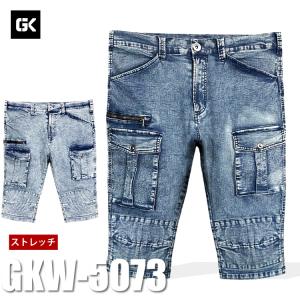 ハーフパンツ デニム ストレッチ 膝下 作業服 作業着 KZOC GLOW KICKS グローキックス ケイゾック GKW-5073