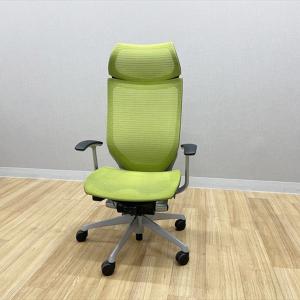 オカムラ バロン エクストラハイバック メッシュ 固定ヘッドレスト付 オフィスチェア 肘付 ライムグリーン 中古 IO-878190B