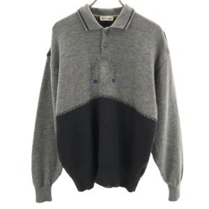 PIA SPORTS ピアスポーツ 日本製 長袖 ポロ セーター 4 グレー ニット メンズ 古着 中古