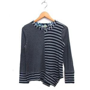 イム センソユニコ i+mu Senso Unico ボーダー カットソー アシンメトリー コットン混 長袖 38 グレー /NT6 レディース