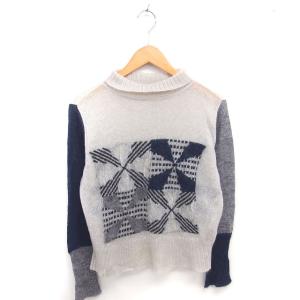 イム センソユニコ i+mu Senso Unico ニット セーター タートルネック 総柄 透け編み ウール混 モヘヤ混 長袖 40 グレー ネイビー 紺 /TT
