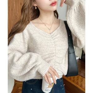 ニット セーター 「累計販売枚数2万枚突破!」アルパカライクフロントシャーリングミックスニットプルオーバー レディース