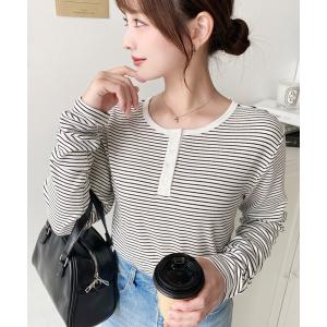 tシャツ 「累計販売枚数2万枚突破!」前後2WAY袖くしゅくしゅヘンリーネックボーダーロンT レディース