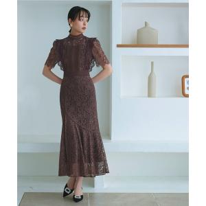 ドレス ボリュームフレアスリーブフラワーレースロングタイトパーティードレス 結婚式 お呼ばれ ドレス 20代 30代 40代