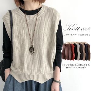 ニットベスト レディース チョッキ トップス クールネック ノースリーブ ゆったり プルオーバー ベスト シンプル カジュアル レイヤード 重ね着