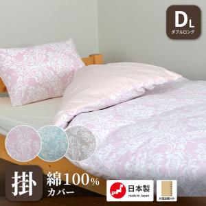 掛ふとんカバー日本製 綿100% ダブル 190×210cm ダブルロングサイズ スヤマ エポック ダマスク柄 ひも付き 掛カバー おしゃれ 丸洗い可