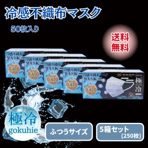 冷感マスク 不織布 50枚 極冷マスク プリーツ クールマスク 5箱 夏用 ふつう 三層 接触冷感 冷たい 涼しい 爽快 冷却 ひんやり ヒロコーポレーション