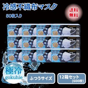 冷感マスク 不織布 50枚 極冷マスク プリーツ クールマスク 12箱 夏用 ふつう 三層 接触冷感 冷たい 涼しい 爽快 冷却 ひんやり ヒロコーポレーション