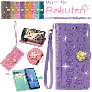 Rakuten Hand 楽天 ハンド 手帳型 カバー big スマホケース らくてん ビッグ Big RAKUTEN BIGS ストラップ キラキラ 可愛い ネコ イヌ