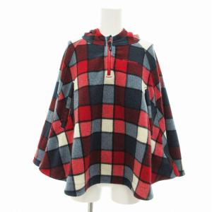 コロンビア Columbia 美品 ポンチョ フリース ロゴ 刺繍 アウトドアウエア O/S 赤 レッド 紺 /VU△ 0315 レディース