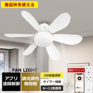 【音声アシスタントで操作】LEDシーリングファンライト E26 シーリングファン ファン付き照明 10畳 リモコン 調色調光 6枚羽根 5階段風量 空気循環 扇風機 静音