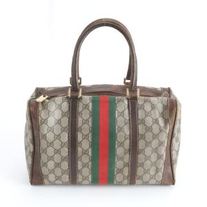 グッチ GGスプリーム シェリー ライン ミニ ボストン レザー ハンドバッグ トート 本革 ブラウン 茶色 レディース RRM DP2-9
