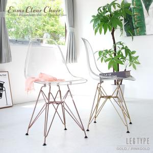 イームズチェア クリア 透明 クリアチェア シェルチェア ゴールド ピンクゴールド スチール脚 おしゃれ リプロダクト デザイナーズチェア 椅子
