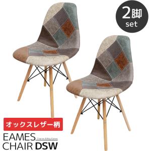 イームズ チェア パッチワーク Eames DSW ヴィンテージ レザー合皮柄 オックス生地 スクープ デザイナーズ家具 レザー 2脚セット 新生活応援 EM-56