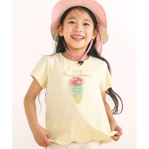 tシャツ アイスウサギシルエットリボン付き無地ボーダー柄スカラップ裾半袖Tシャツ(80~140cm) キッズ 子供服 女の子