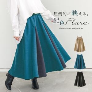 スカート レディース ボトムス フレアスカート ロングスカート ロング丈 配色 異素材 スエード調 春 秋 冬 オシャレウォーカー「メール便不可」「30」
